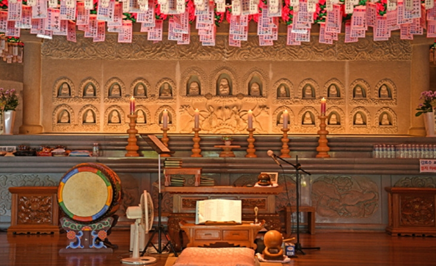 절 뒤편에 있는 마애석불에서 보는 서해 풍광과 봄철 벚꽃이 아름답기로 유명합니다.