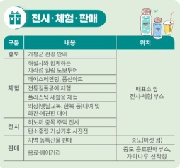 각종 전시와 체험, 판매부스가 준비되어 있습니다. 매표소 앞 체험부스에서는 해설사와 함께하는 도보투어, 페이스페인팅, 풍선아트, 전통짚풀공예, 플라스틱 재활용 체험 및 옛날교복, 한복등 의상 대여체험도 마련되어 있습니다.